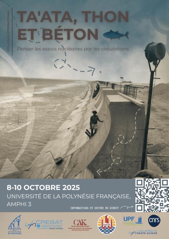 Organisé autour d’un titre aussi évocateur que symbolique, Ta‘ata, thon et béton, ce colloque propose une relecture originale et critique de l’histoire du Centre d’Expérimentation du Pacifique (CEP), ainsi que des autres sites d’essais nucléaires dans le Pacifique.
